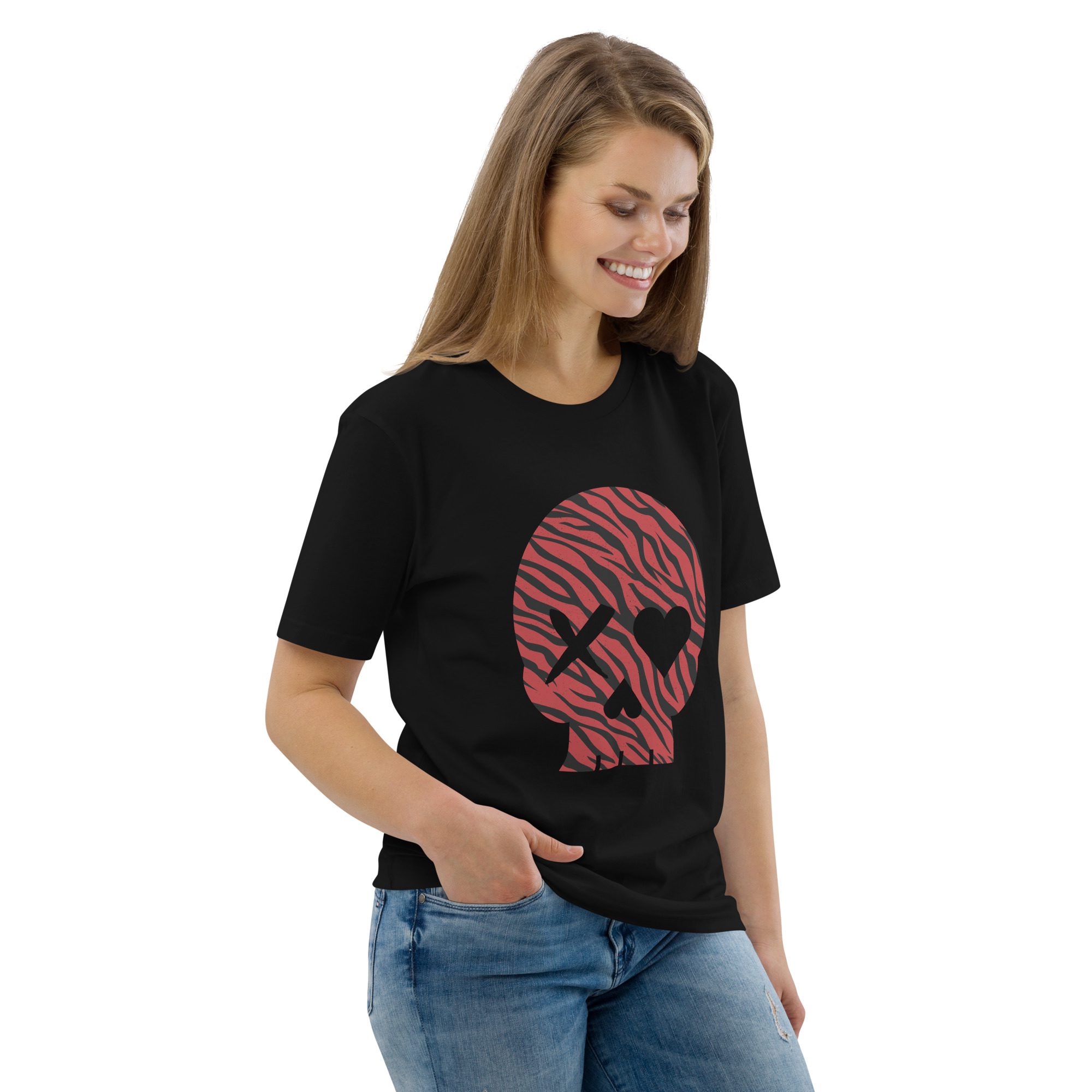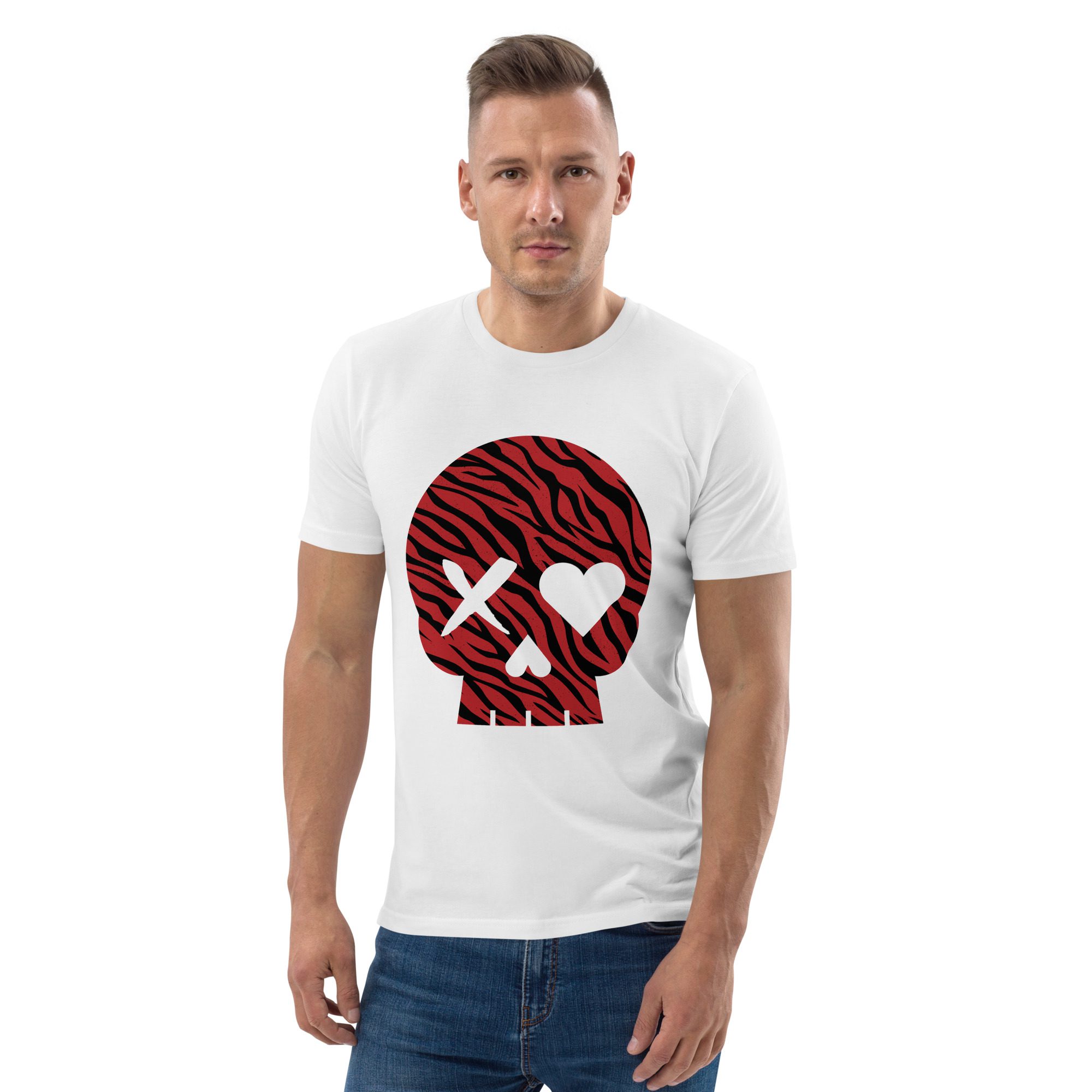 La camiseta unisex de color negro o blanco con estampado de cebra roja sobre una calavera de SkullsLover®, es capaz de mejorar cualquier outfit, gracias a su look rebelde, fresco y chic. Confeccionada con algodón hilado en anillos 100% orgánico, esta camiseta unisex es una prenda indispensable en tu armario. Es una prenda de alta calidad, muy cómoda y, lo mejor de todo, totalmente respetuosa con el medio ambiente.